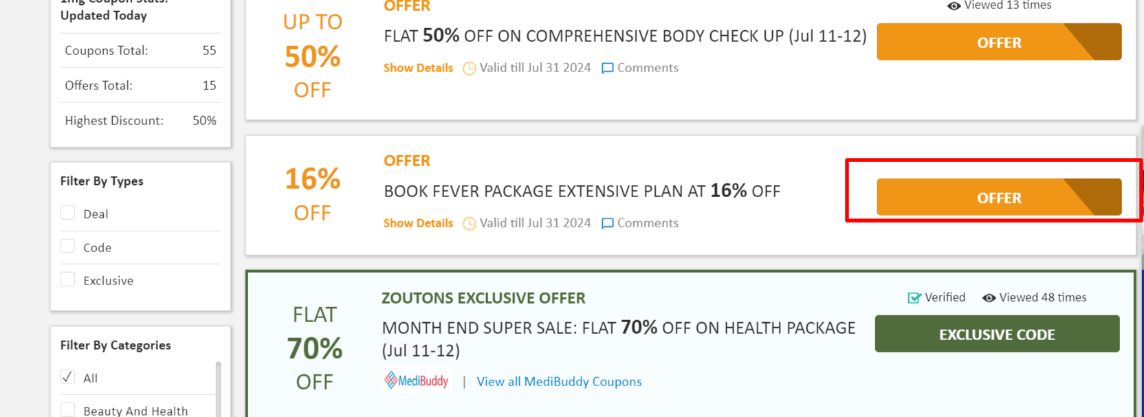 OfferShow Details- Book comprehensive full body check up at 50% off