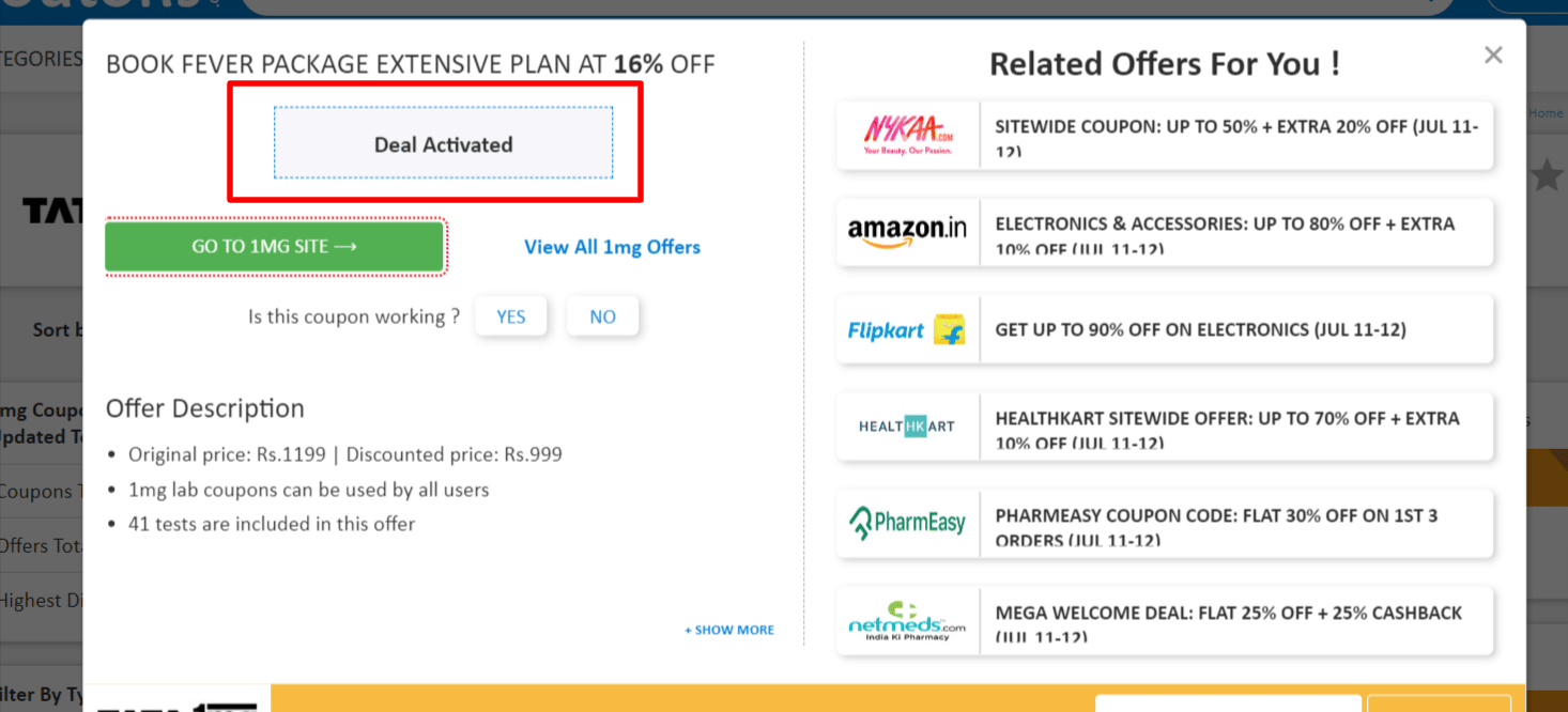 Step 2: Once, you click on the "GET DEAL", the offer gets activated.