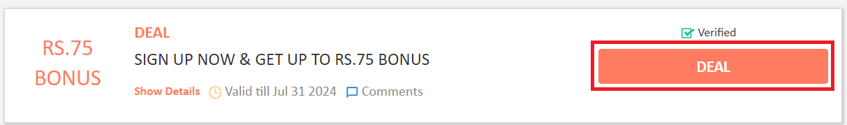 - RS.75 BONUSDeal