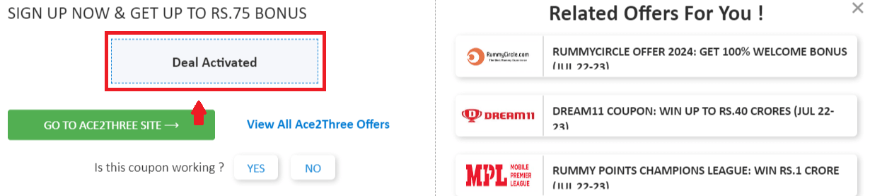 Step 2: Once, you click on the "GET DEAL", the offer gets activated.