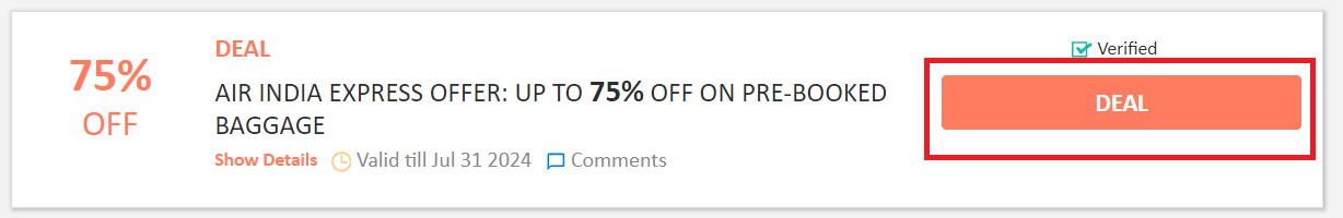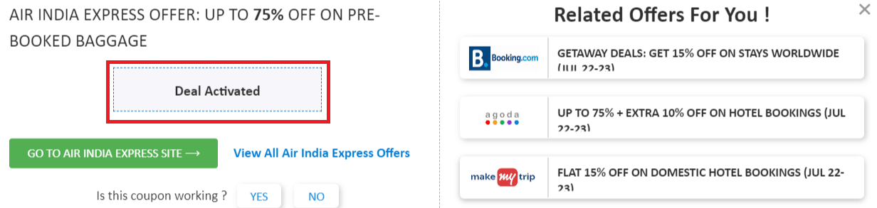 Step 2: Once, you click on the "GET DEAL", the offer gets activated.