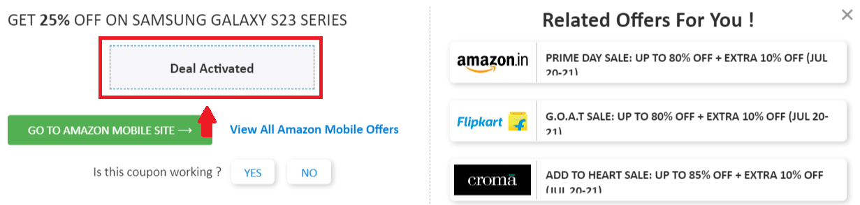 Step 2: Once, you click on the "GET DEAL", the offer gets activated.
