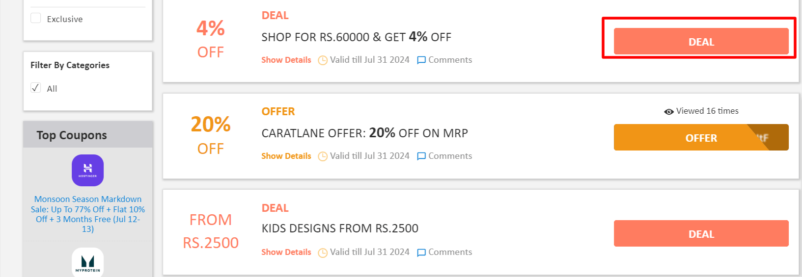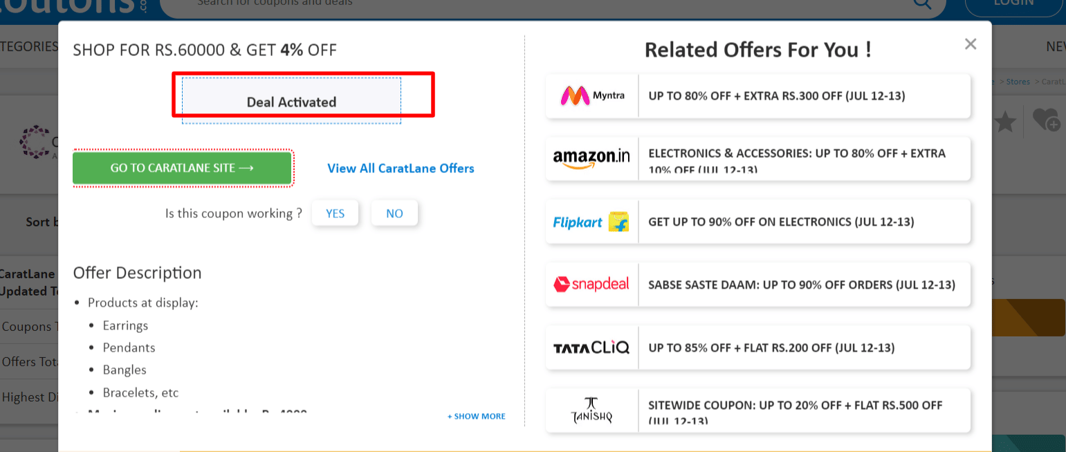 Step 2: Once, you click on the "GET DEAL", the offer gets activated.