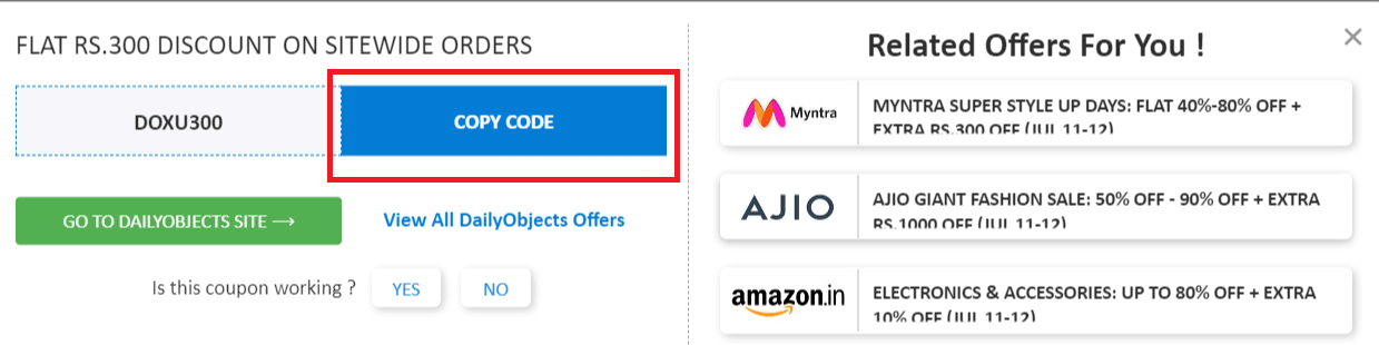 Q) Is the DailyObjects Rs.300 off coupon code active?