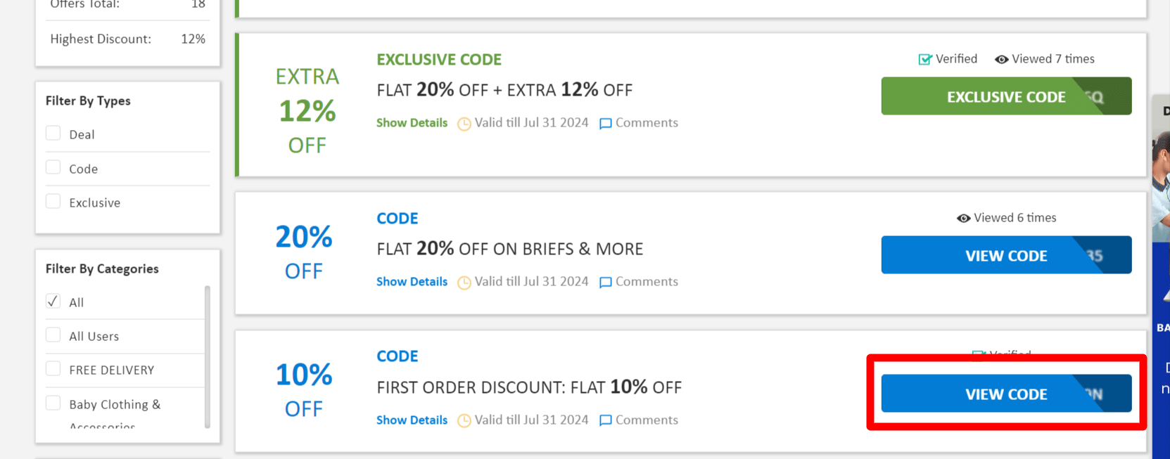 SAVE-EXTRAView CodeShow DetailsPromo code discount on order of 3 innerwear Maximum discount Up to 15% off Exchange available Free shipping on order above Rs.600