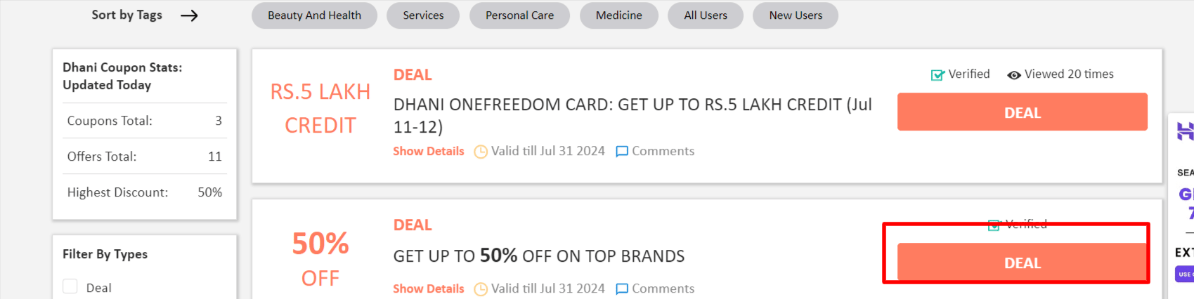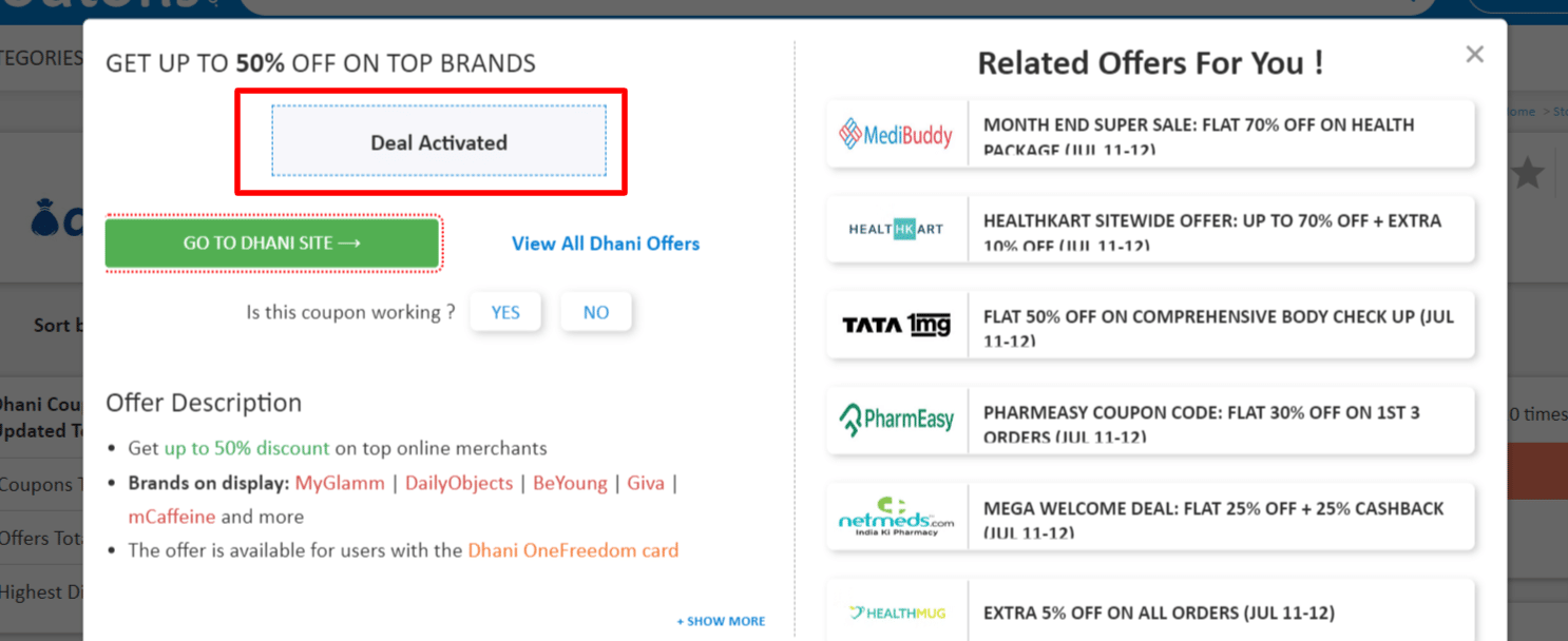 Step 2: Once, you click on the "GET DEAL", the offer gets activated.