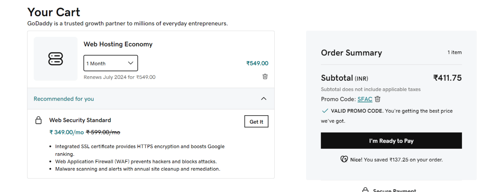 Purchase hosting or domain from GoDaddy and get a flat 25% discount with a first-time user code- SFAC.