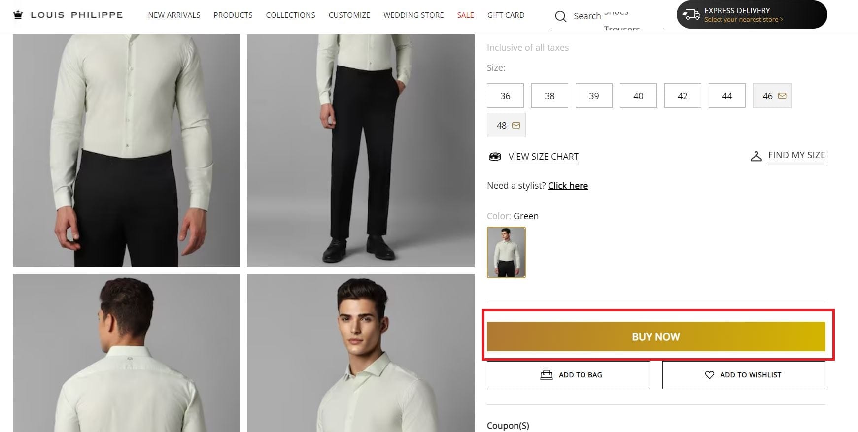 Step 3: Visit The Louis Philippe website and Add the product to the bag you want to buy