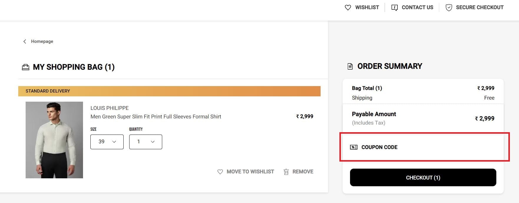 Step 5: Paste your Louis Philippe code and the discount gets applied. You can now make the payment to finish the process.