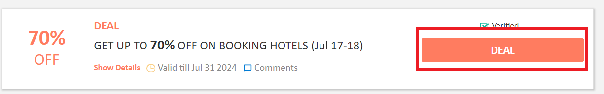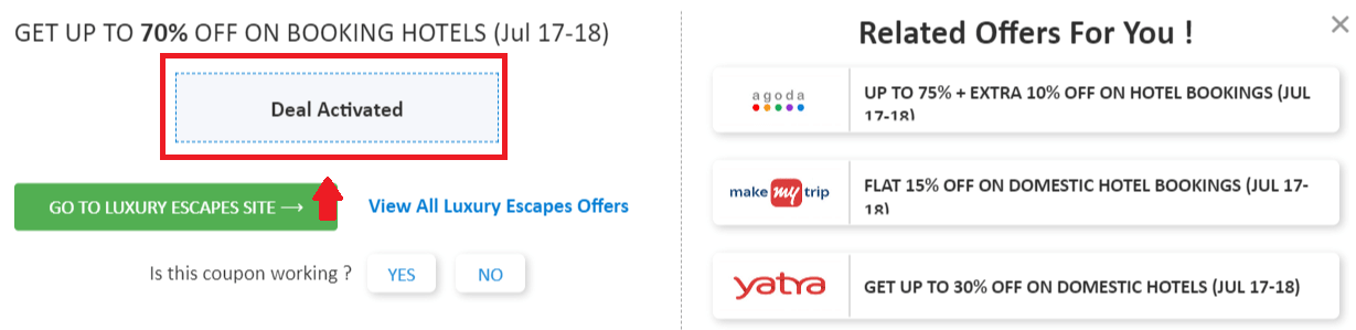 Step 2: Once, you click on the "GET DEAL", the offer gets activated.
