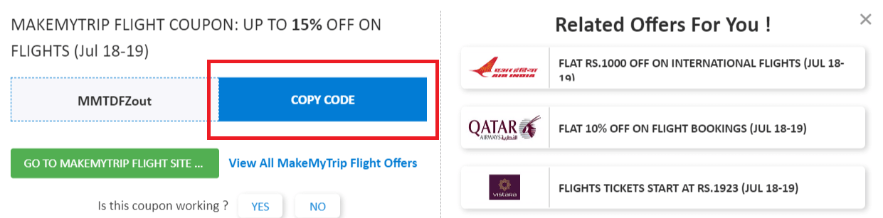 - Makemytrip Flight coupon codes details: