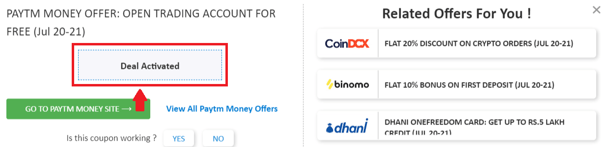 Step 2: Once, you click on the "GET DEAL", the offer gets activated.