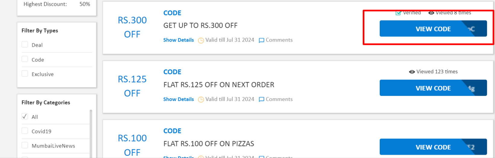 | Online Pizza Delivery | Save up to Rs.300 OFF |