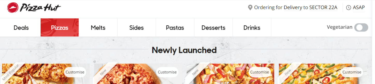 Step 3: Visit Pizza Hut website and select your favourite meal