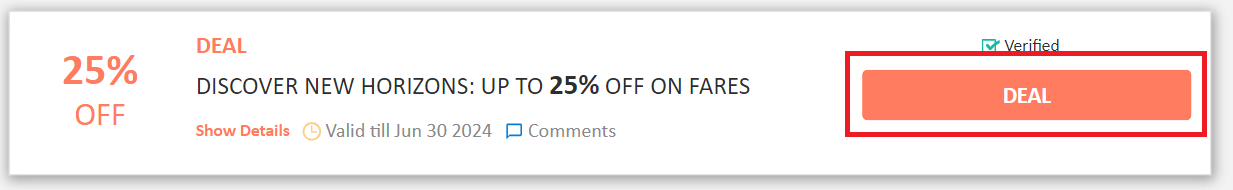 | Sitewide Fare Offers | Up to 25% Off on Domestic & International Flight Fares |