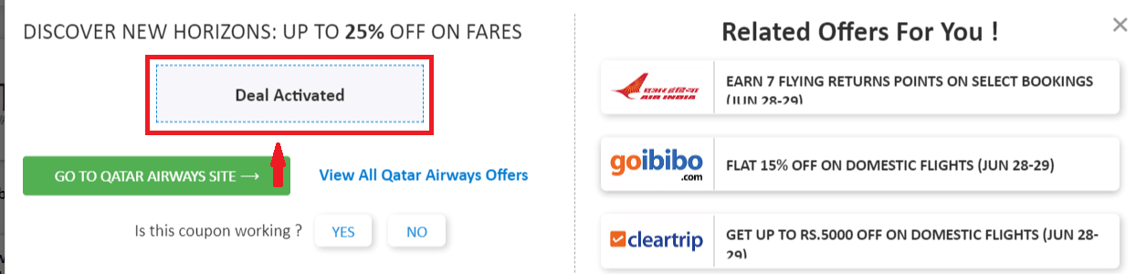 Step 2: Once, you click on the "GET DEAL", the offer gets activated. Or you can choose from the given Bank Coupon Codes.