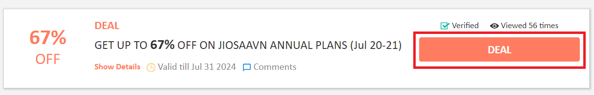 - JioSaavn coupon is available for all users