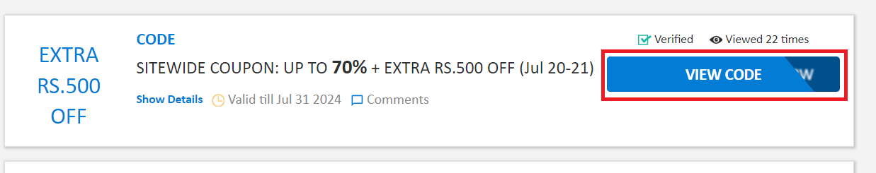 SITEWIDE COUPON: UP TO 70% OFF + EXTRA RS.500 OFF (Apr 02-03)