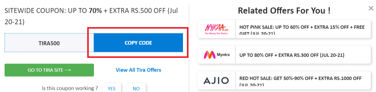 | Sitewide Offer | TIRA500 | Up to 50% Discount + Extra Rs. 500 Off |