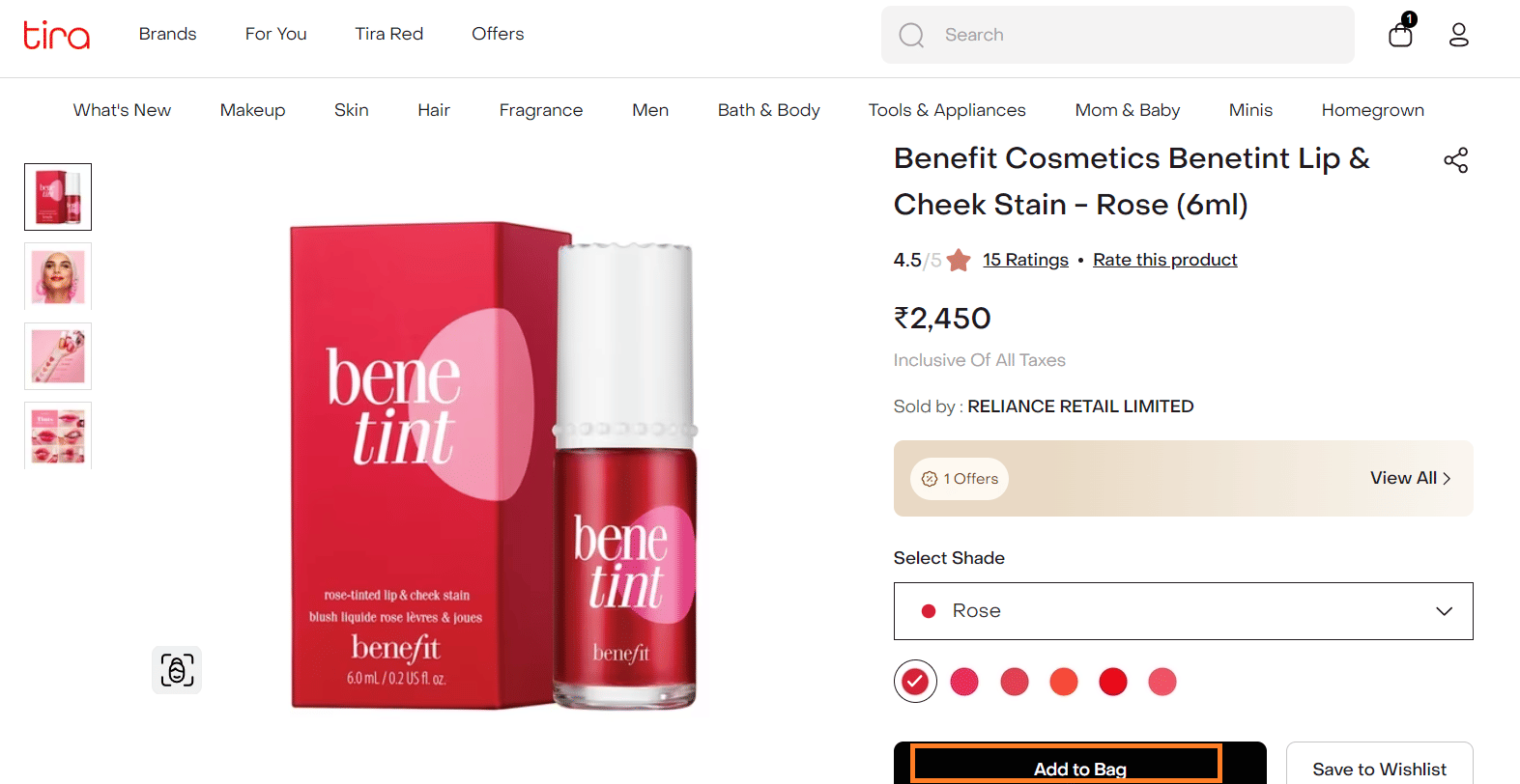 Step 3: Visit Tira and Add the product to the bag you want to buy.