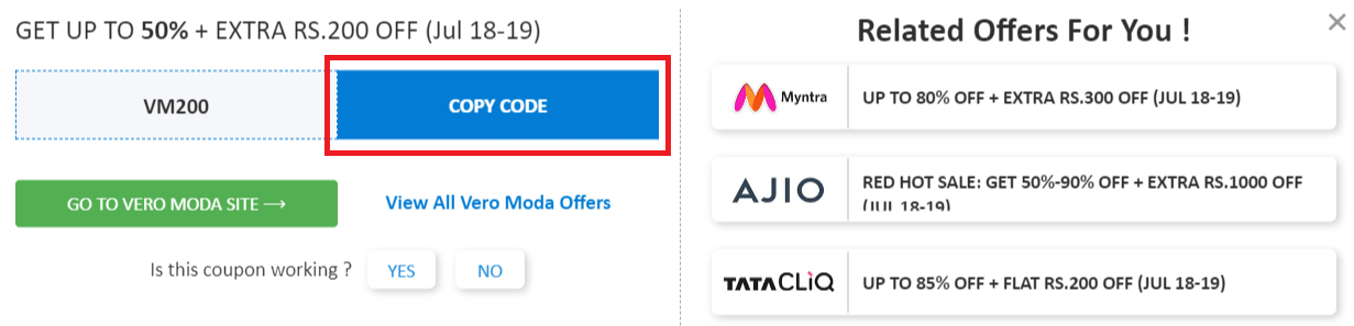 | Sitewide Offer | VM200 | Up to 50% OFF + Extra Rs. 200 Discount |