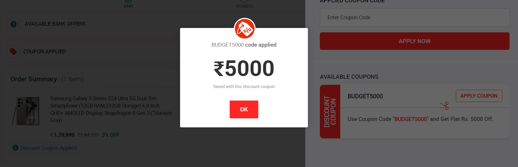 | Smartphones | BUDGET500 | Up to 45% Discount + Extra Rs. 500 Off |
