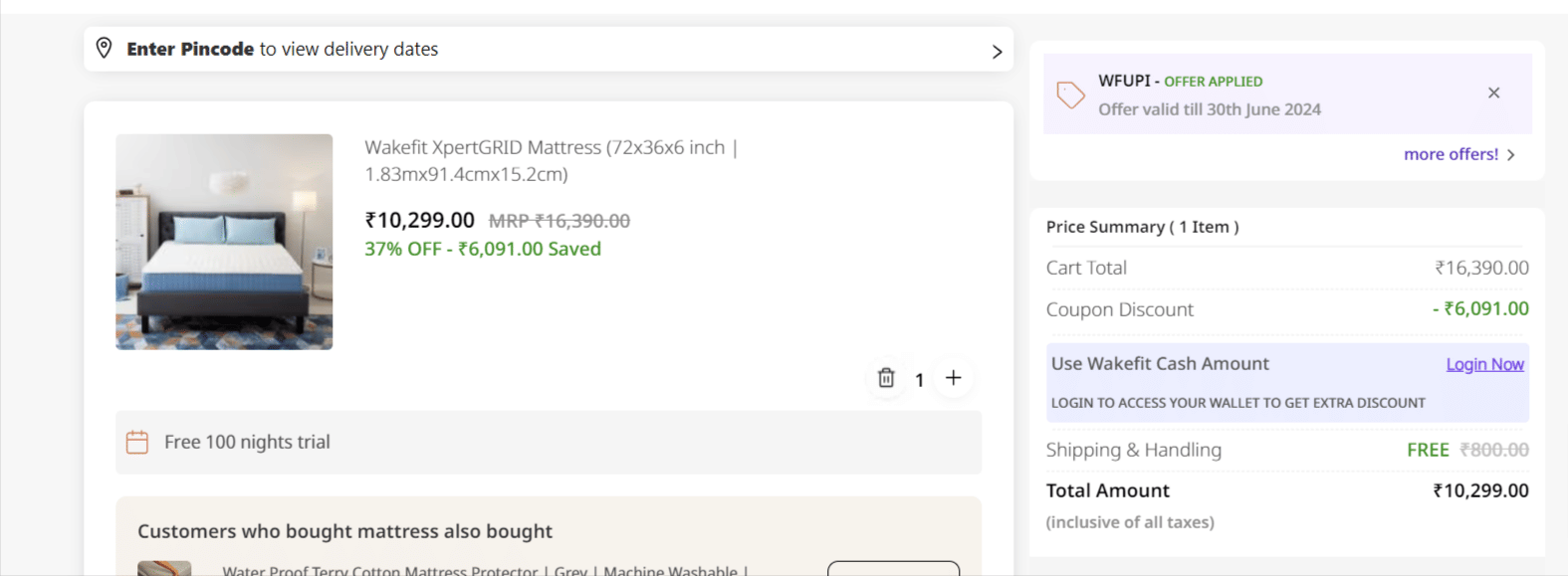 Shop at Wakefit and pay via the UPI mode and save up to 84% on your orders with code- WFUPI.