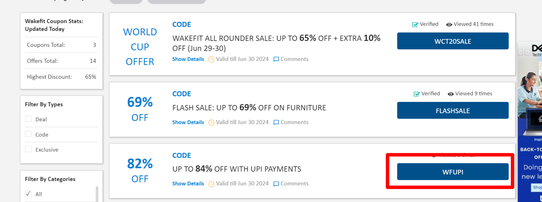 | Wakefit Sale | Get up to 65% discount with an extra 10% OFF |