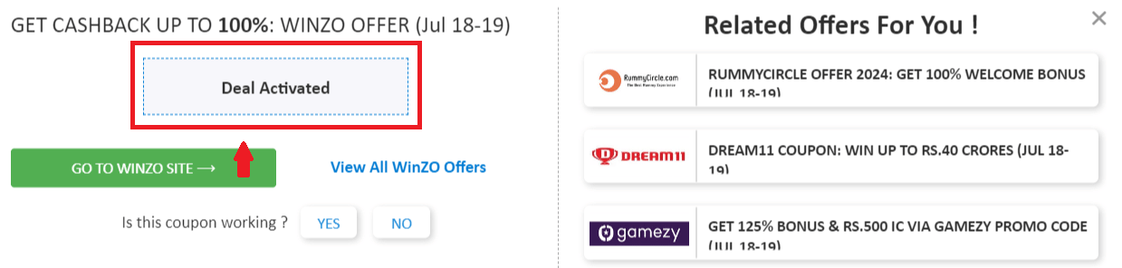 Step 2: Once, you click on the "GET DEAL", the offer gets activated.