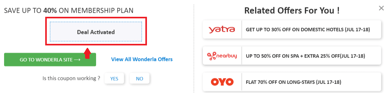 Step 2: Once, you click on the "GET DEAL", the offer gets activated.