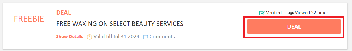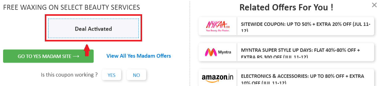 Step 2: Once, you click on the "GET DEAL", the offer gets activated.