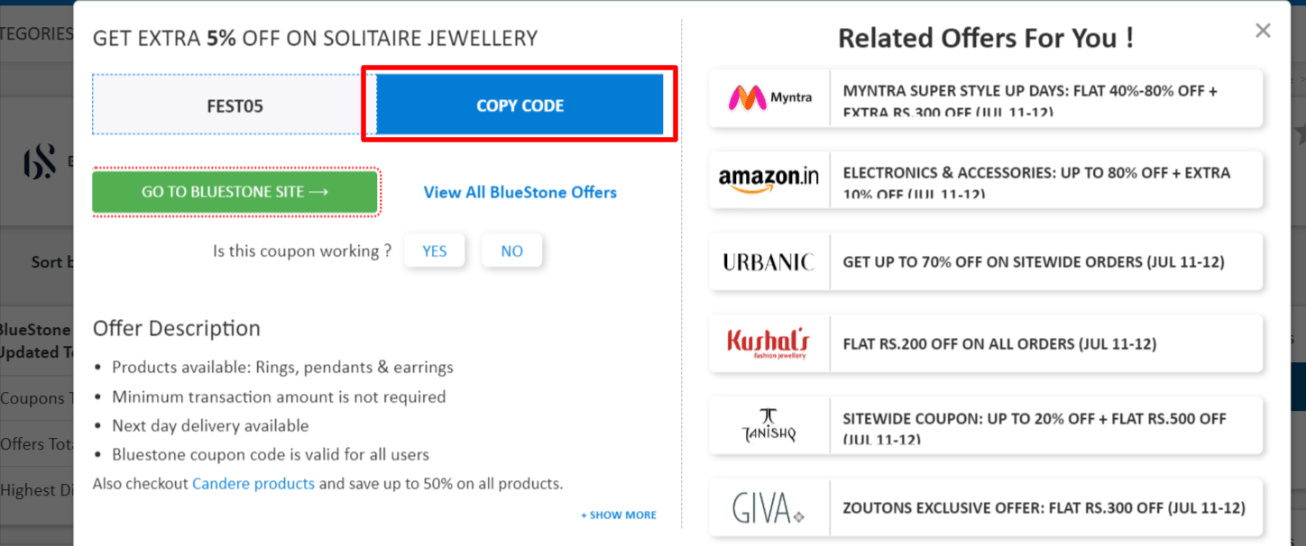 - BlueStone coupon is available for all users