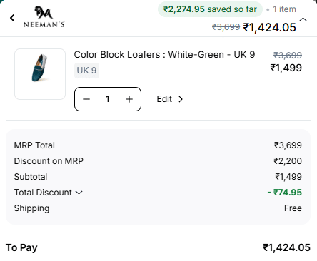 This Neeman's coupon code has been verified by our Zoutons team and coupon experts as of April 2026 to ensure it’s active and working. Shop from a wide range of women's & men's shoes and sneakers and apply the code COMFY4U at checkout to get an extra 5% OFF on selected products for even more savings.