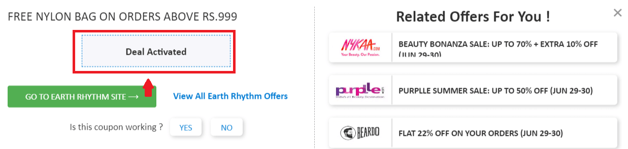 Step 2: Once, you click on the "GET DEAL", the offer gets activated.