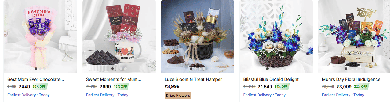 | Mom’s Sweetheart Truffle Cake & Bloom Box | ₹1,499 |
