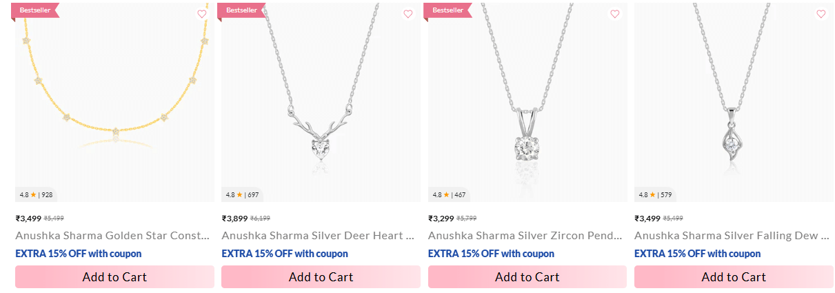 | Anushka Sharma Golden Star Constellation Necklace | Rs.5,999 |