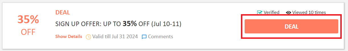 Step 2: Once, you click on the "GET DEAL", the offer gets activated.