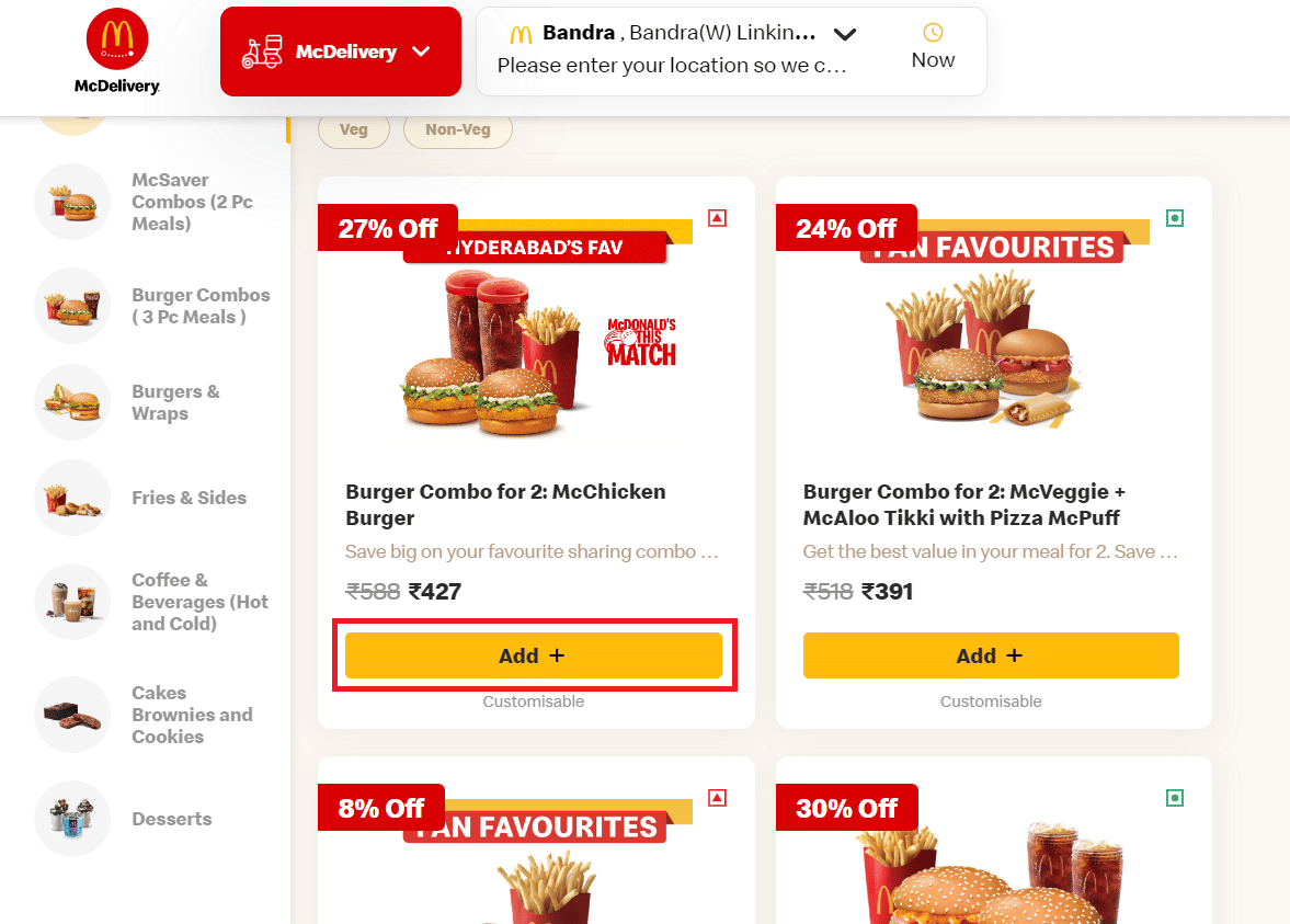 Step 3: Visit McDonalds and Add the product to the bag you want to buy. Customize according to your preference.