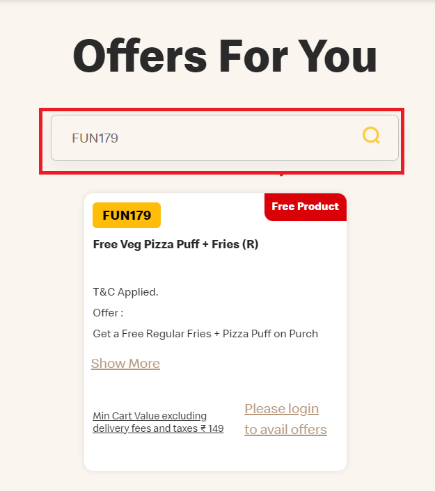 STA199Exclusive CodeShow Details- Get free 4-piece chicken nuggets and 1 regular-sized fries on orders above Rs.199