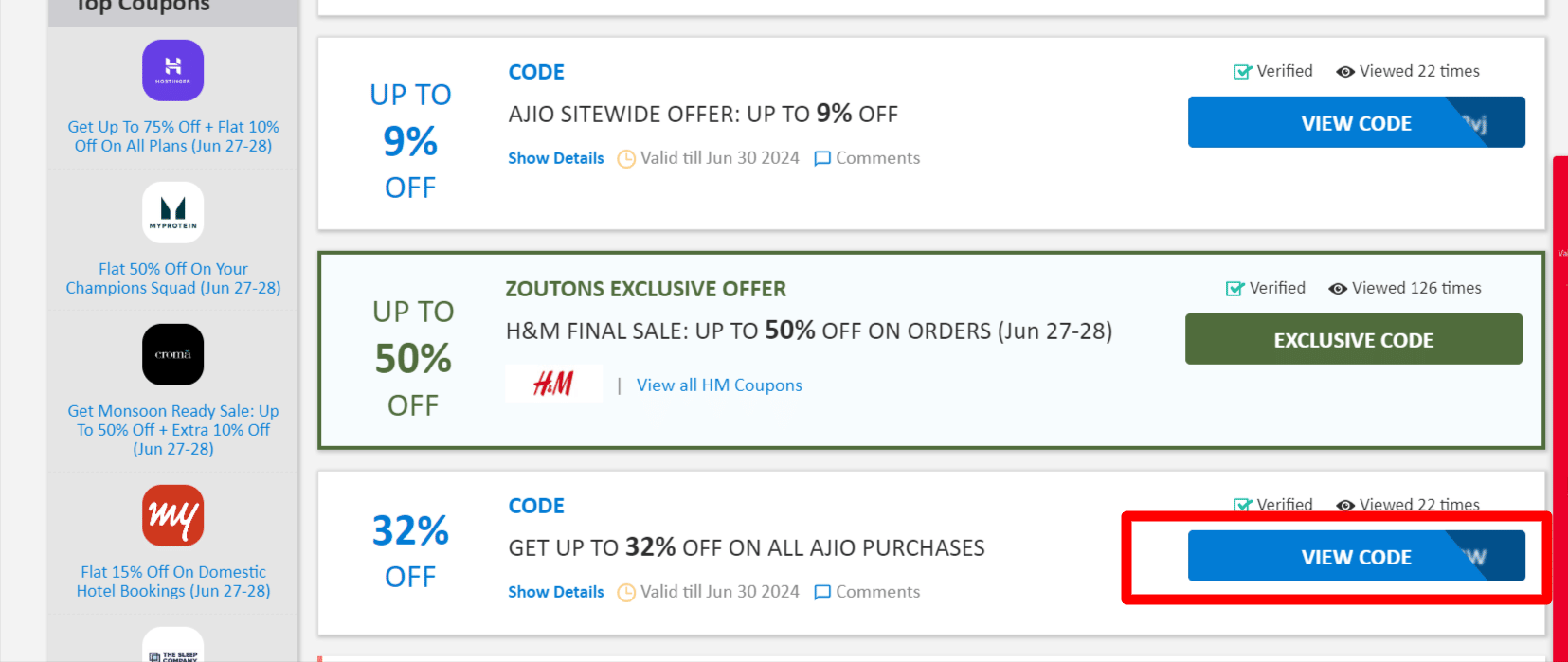 | Offer Type | Coupon Code | Validity / About the Offer |