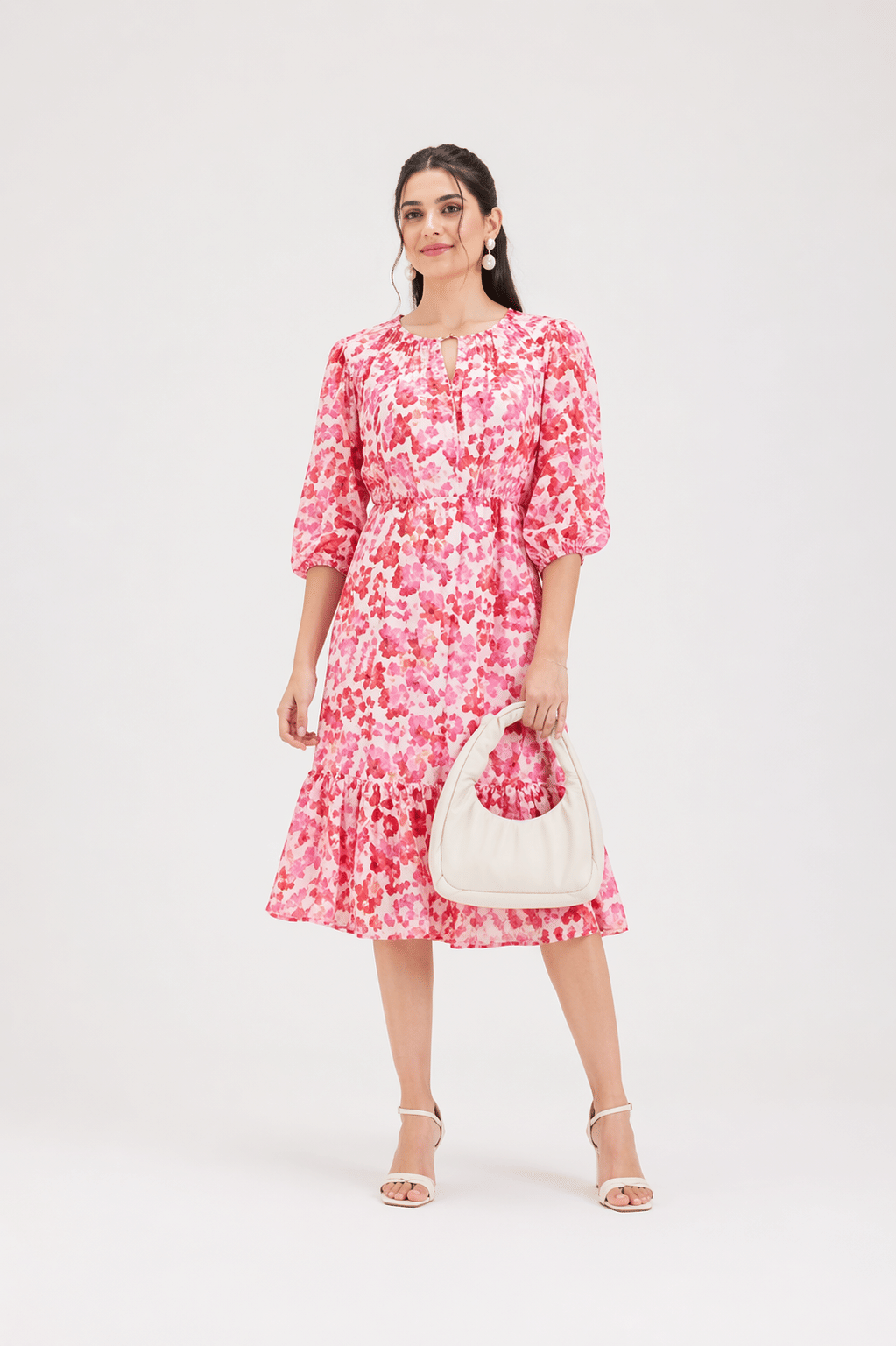 Kazo's midi dress is built for warm-weather outings — brunches, casual office days, or evening events. The puff-sleeve detail adds volume up top while the flowy hem keeps the silhouette breezy and flattering.