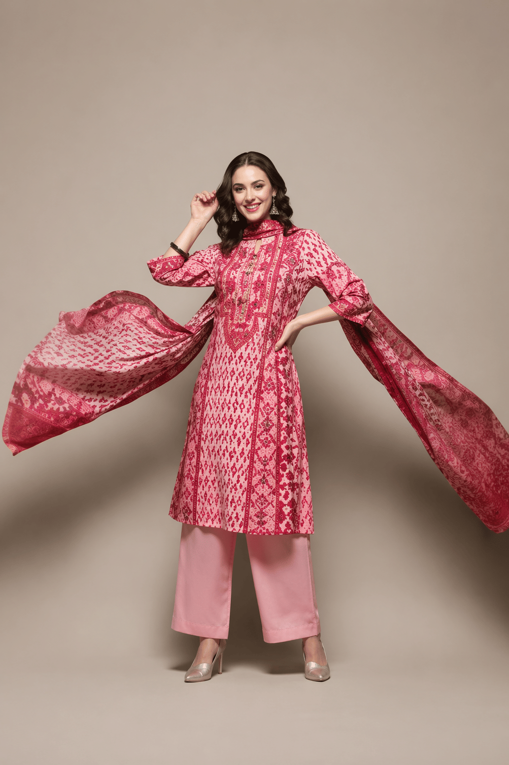 Biba Women's Printed Cotton Straight Kurta with Palazzo