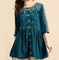 A stylish square-neck kurti featuring ethnic motifs. Brand known for contemporary Indian fashion, perfect for office-goers.
