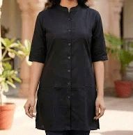 A clean, minimalist straight-cut kurti with a Mandarin collar, perfect for formal office settings and warm weather comfort.