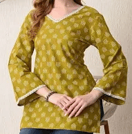 A classic ethnic motifs printed kurti with a V-neck that pairs beautifully with trousers or palazzos for highly-rated quality.