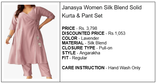 | KLOSIA Women Embroidery Solid Anarkali Kurta and Pant Set with Dupatta | Rs.2,999 | Rs.799 | 4.4 out of 5 |