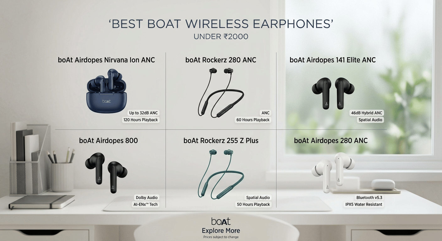 🎧 Our 12 Best Picks — boAt Wireless Earphones Under ₹2000