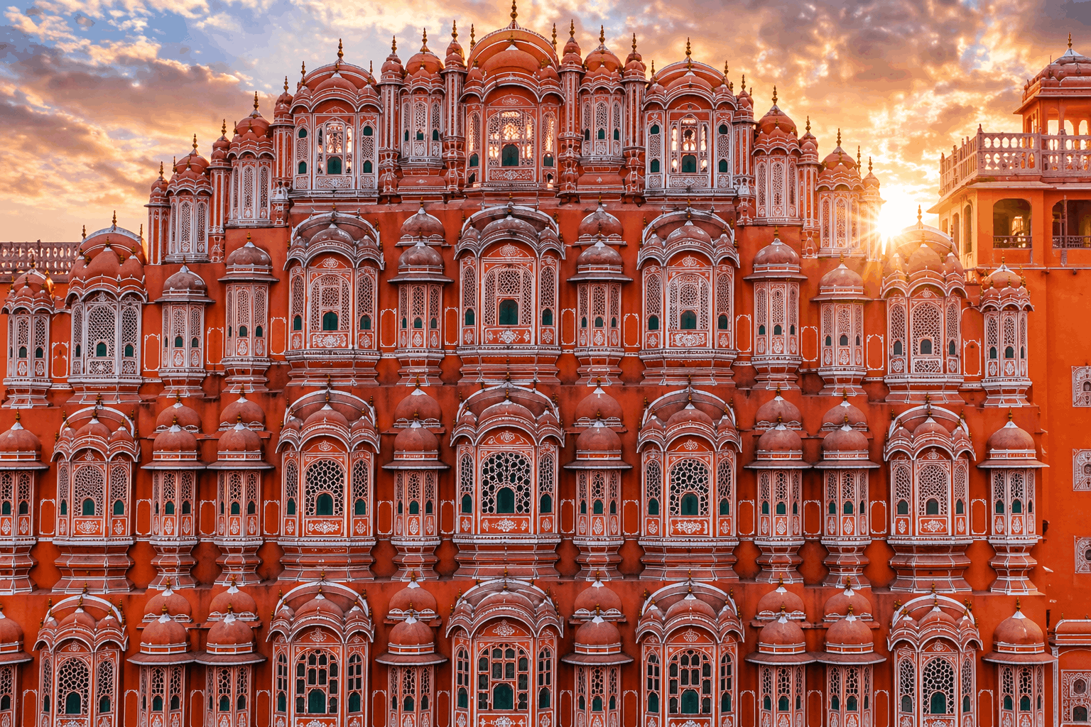 Pink City heritage with forts, palaces, and rooftop dining—comfortable 5-hour bus journey.