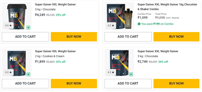 Another reason people love MuscleBlaze is how easy it is to buy. It’s available on almost every major online platform, and you’ll often find good deals, fast delivery, and plenty of reviews to help you decide.