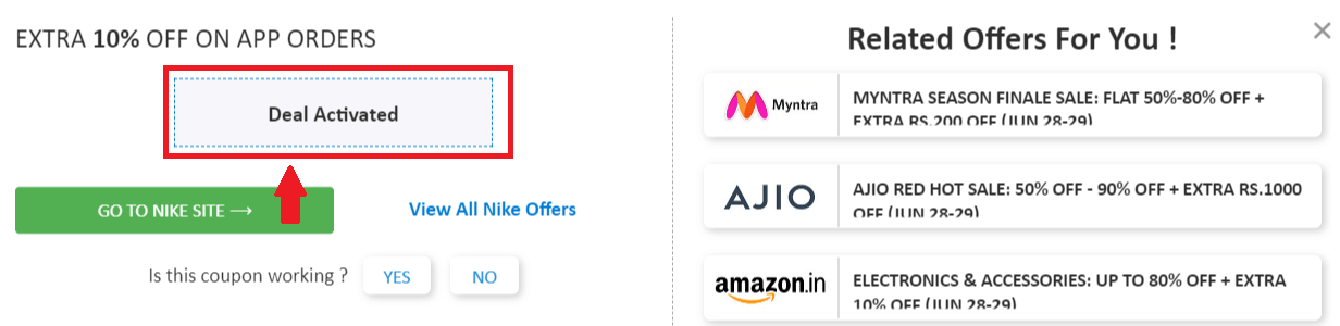 Step 2: Once, you click on the "GET DEAL", the offer gets activated.